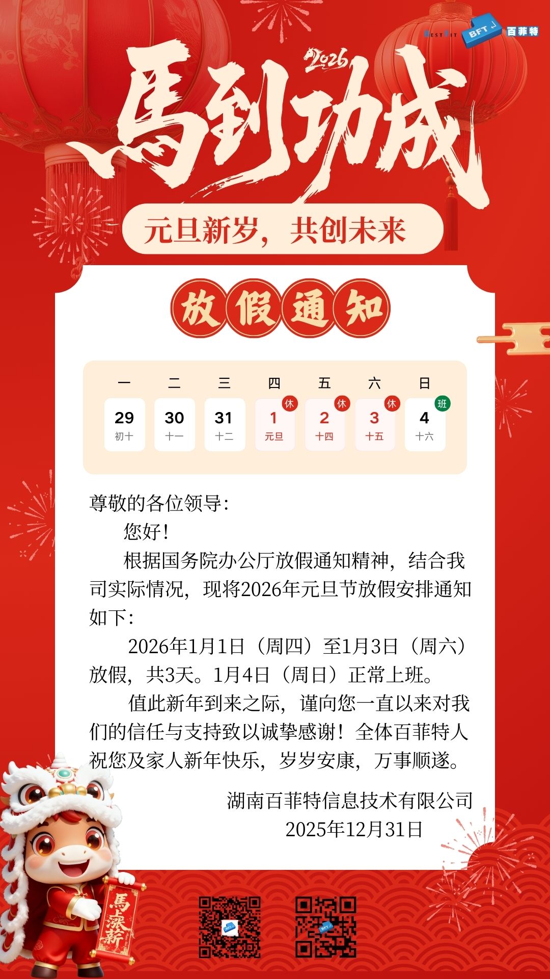 元旦放假通知